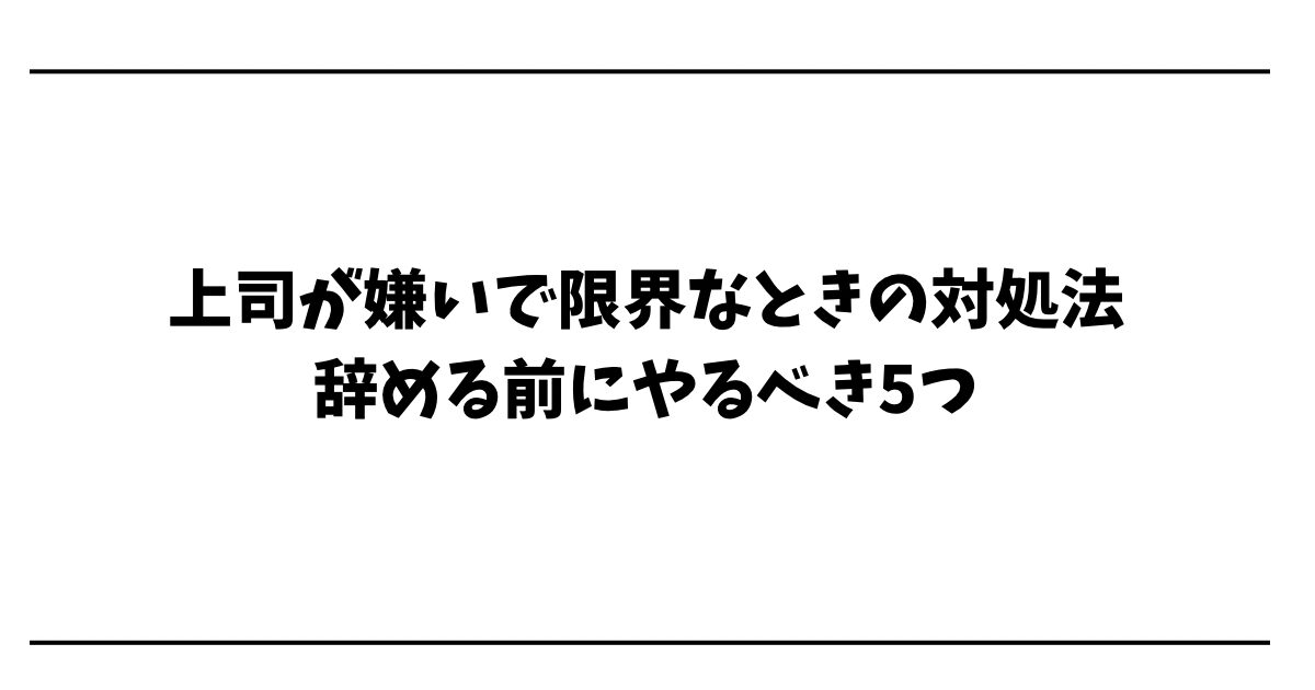 この記事では、同じように「上司が嫌いで限界」と感じているあなたに向けて、