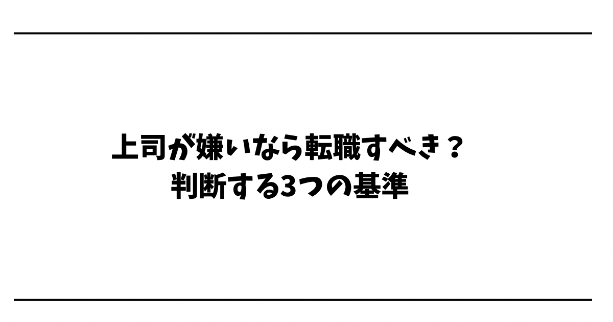 しかし、感情だけで転職を決めてしまうのは危険です。上司が嫌いという理由だけで辞めると、転職先でも同じ問題にぶつかる可能性があります。