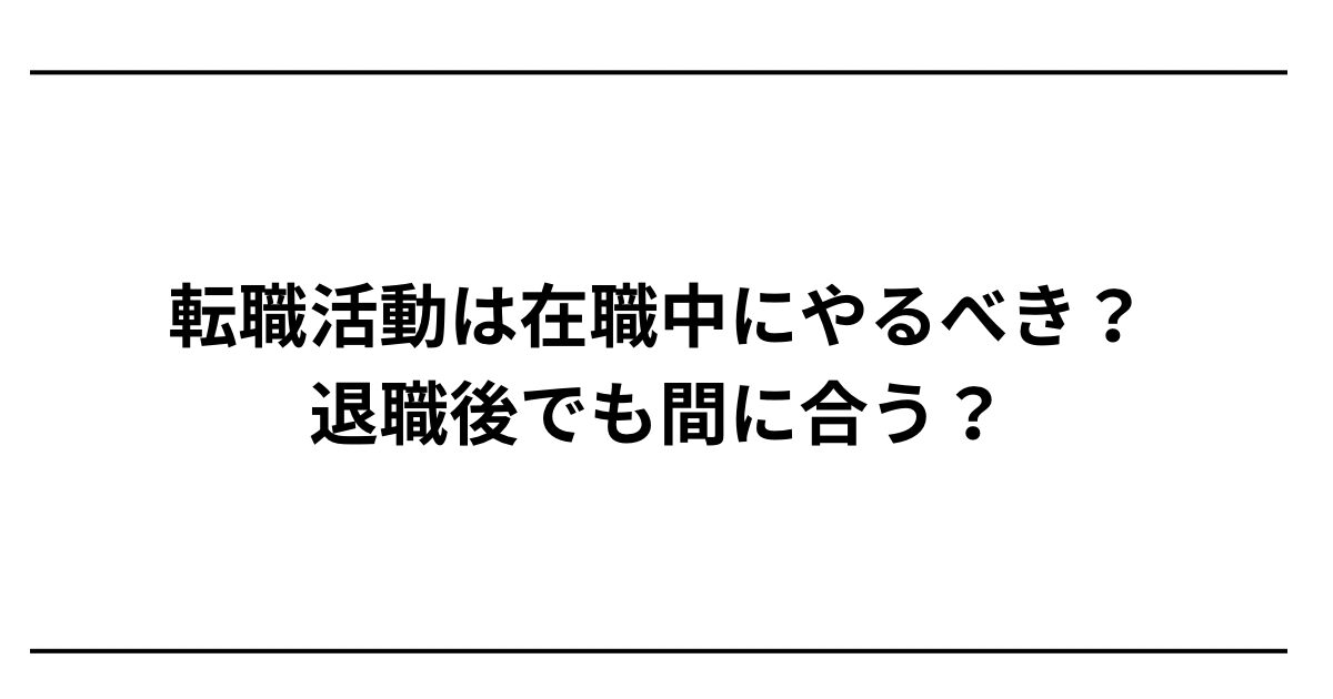 「転職したいけど、今の会社にいながら活動するべき?それとも辞めてから集中したほうがいい?」